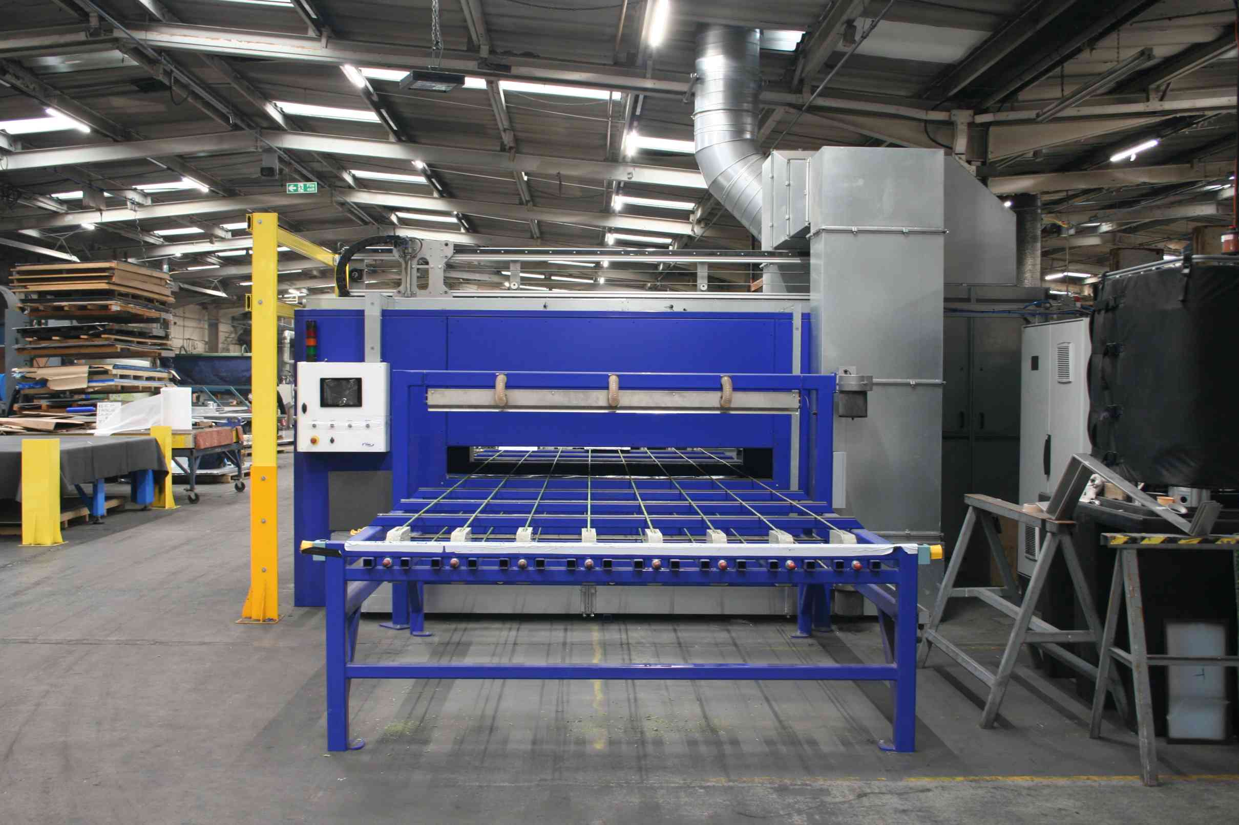 We were one of the first architectural panel manufacturers to bring a tested panel to the marketplace. Our Ultraglaze-NC panels have been tested at Warrington Fire and achieved a Eurofire rating of A2 s1 d0 in accordance with EN13501-1. Our modern facility includes two automatic adhesive applicators – essential for monitoring the coating weights, three CNC beam saws, five vacuum presses varying in size.